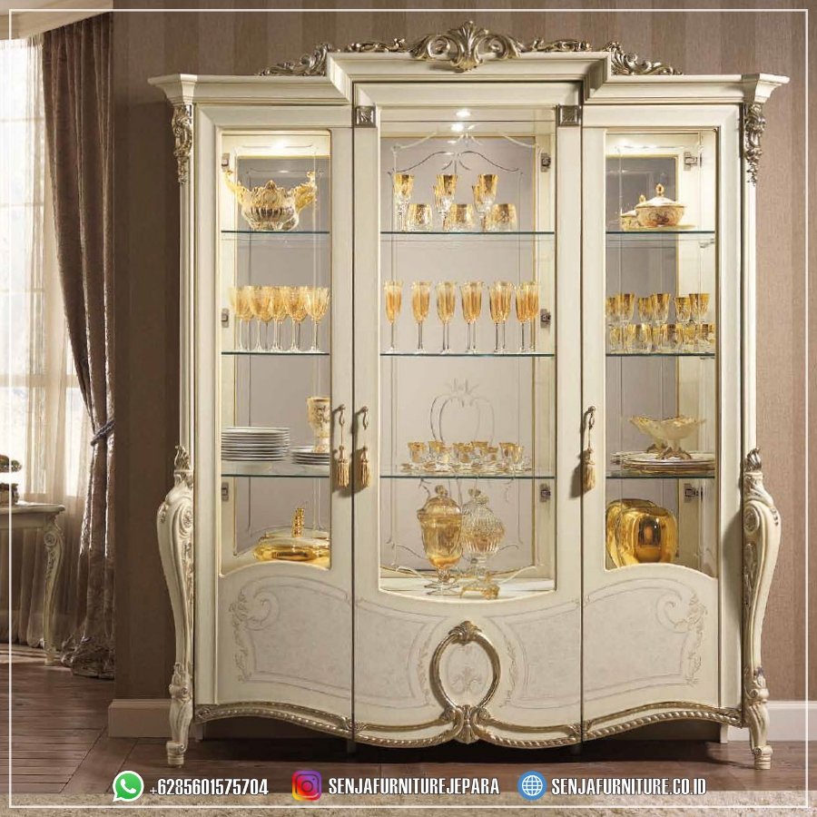 Collection Lemari Hias Mewah Klasik Eropa Kaca Tempered