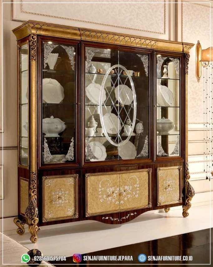 Display Lemari Hias Klasik Carving Cabinet Royal Gold