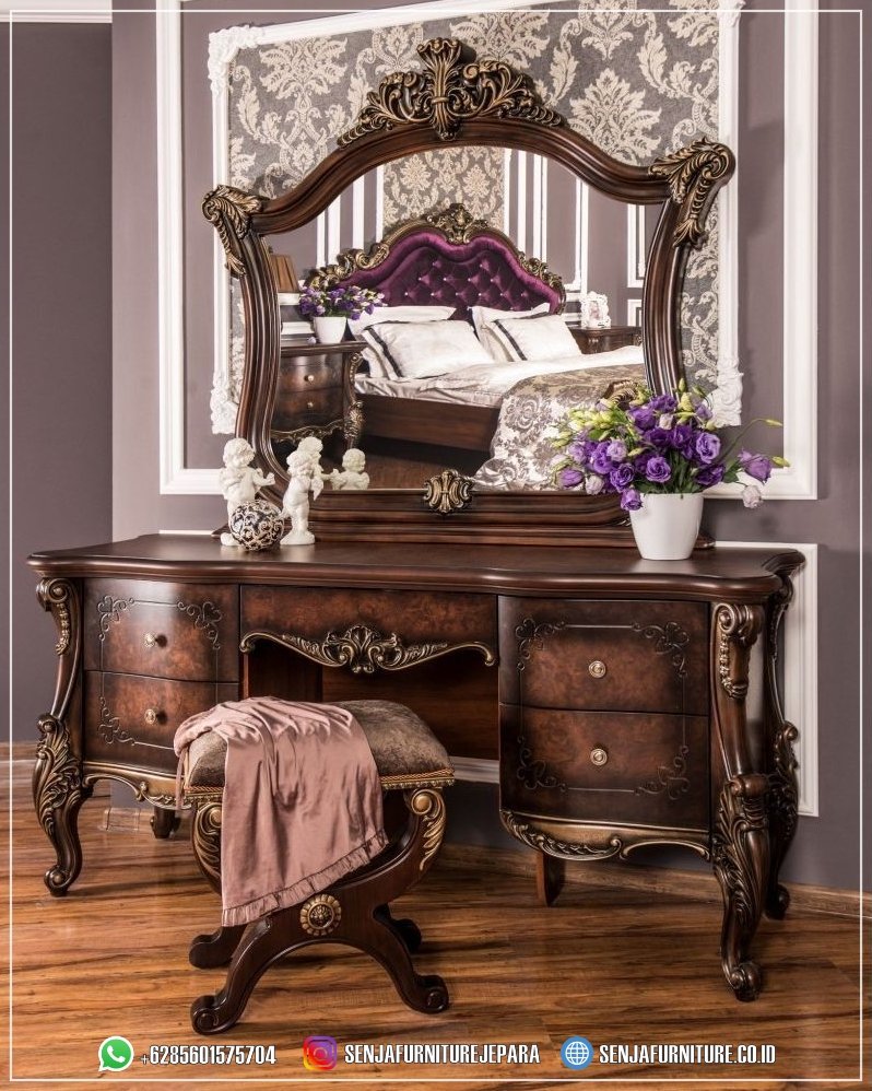 Kami mengundang Anda untuk merasakan kemewahan dan pesona dari Meja Rias Mewah kami yang mengagumkan. Tiap sentuhan, tiap detailnya disusun dengan keanggunan yang tak tertandingi, menciptakan suasana yang mewah dan menginspirasi di dalam ruang tidur Anda. Jadikanlah momen berdandan Anda menjadi istimewa dengan meja rias ini sebagai teman setia. Dari pagi hingga malam, nikmatilah keindahan yang tak terlupakan dari meja rias klasik kami, dan hadirkan kesempurnaan dalam setiap detiknya.