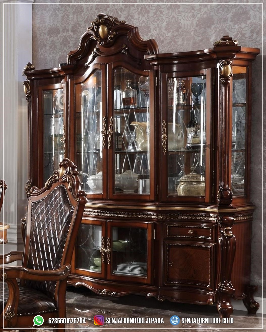Dengan ruang penyimpanan yang mencukupi, Anda dapat dengan mudah menata koleksi barang berharga Anda. Lemari Hias Mewah adalah pernyataan gaya yang berkelas dan memberikan sentuhan elegan yang akan meningkatkan estetika ruangan Anda dengan gemilang. Dibuat dengan detail yang teliti dan perpaduan antara kayu yang indah serta ukiran yang memukau, Lemari Hias Mewah ini tidak hanya menawarkan fungsi praktis sebagai tempat penyimpanan, tetapi juga menjadi titik fokus yang menarik perhatian tamu ketika berkunjung ke rumah Anda.