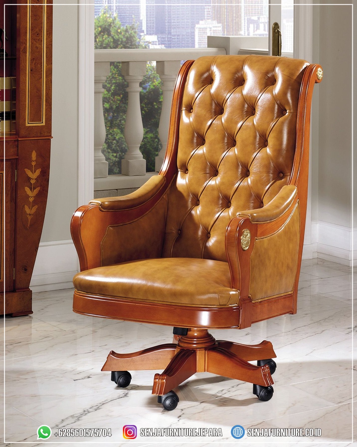 Cocok digunakan untuk ruang kantor, ruang kerja rumah, ruang manajer, maupun direktur, kursi kerja kulit menjadi pilihan tepat yang menggabungkan fungsi, kenyamanan, dan estetika ruangan.