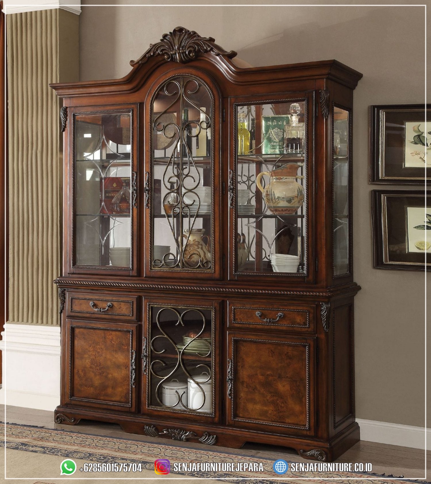 Dengan ruang penyimpanan yang mencukupi, Anda dapat dengan mudah menata koleksi barang berharga Anda. Lemari Hias Mewah adalah pernyataan gaya yang berkelas dan memberikan sentuhan elegan yang akan meningkatkan estetika ruangan Anda dengan gemilang. Dibuat dengan detail yang teliti dan perpaduan antara kayu yang indah serta ukiran yang memukau, Lemari Hias Mewah ini tidak hanya menawarkan fungsi praktis sebagai tempat penyimpanan, tetapi juga menjadi titik fokus yang menarik perhatian tamu ketika berkunjung ke rumah Anda.
