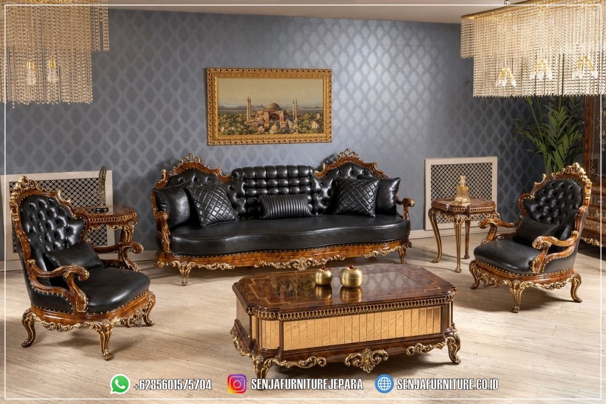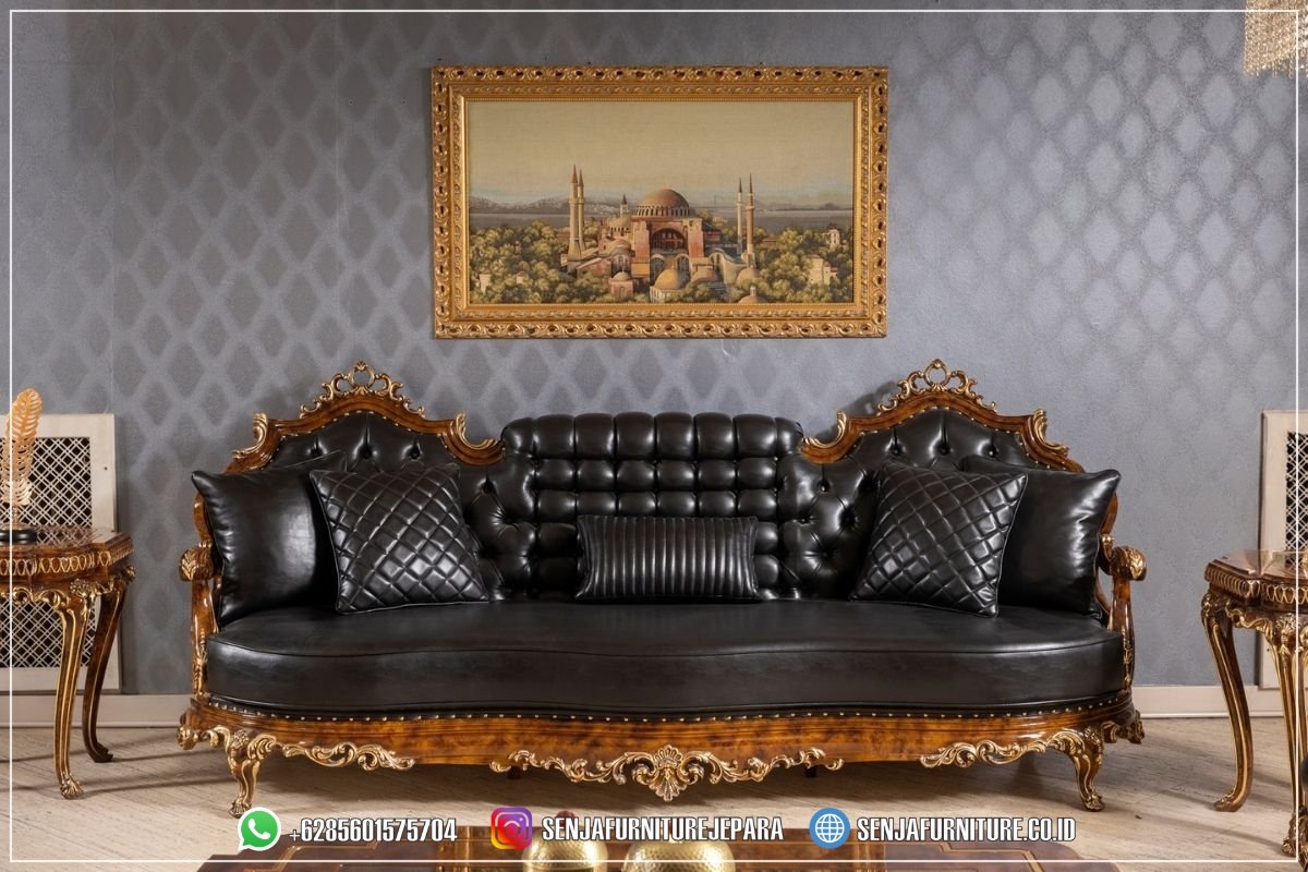 Kursi Sofa Tamu Mewah Ukir Klasik Material Kulit Itali