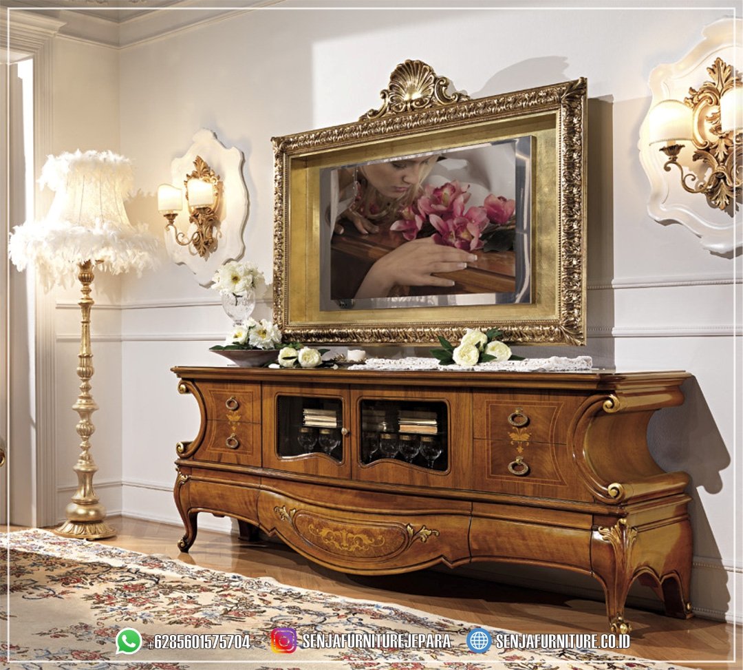 Model Meja TV Mewah Jati Jepara Klasik Minimalis Leandro