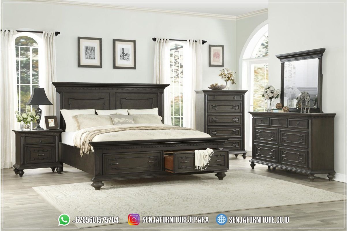 Set Kamar Tempat Tidur Jati Laci American Finish