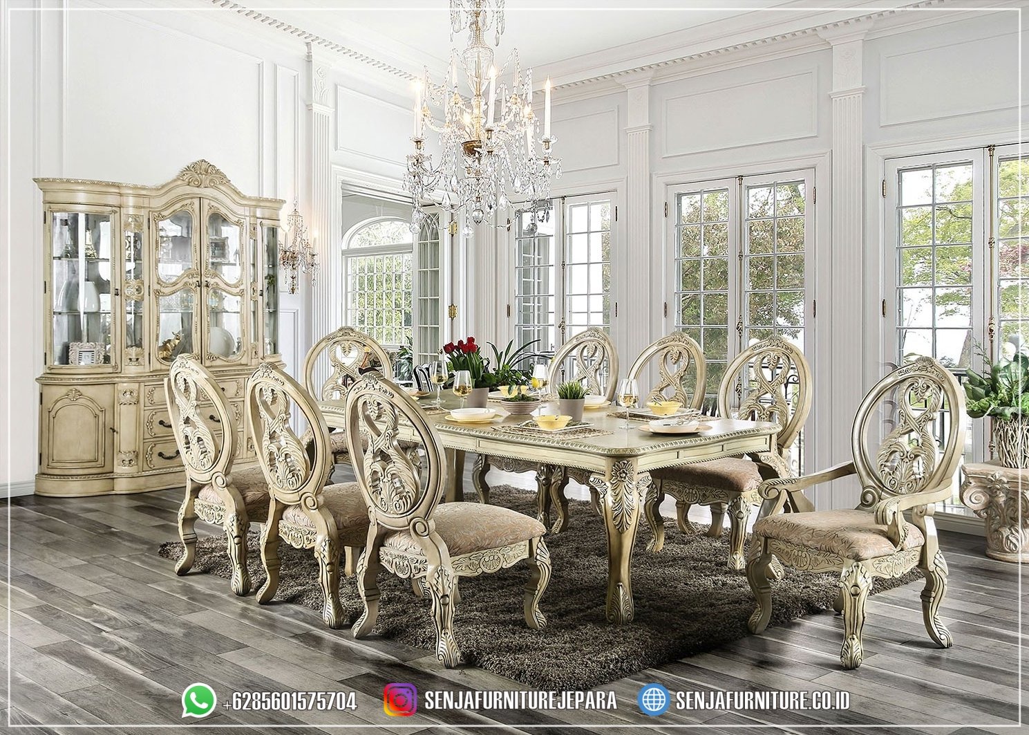 Dengan detail ukiran yang indah dan bahan berkualitas, Meja Makan Mewah kami akan menjadi pusat perhatian dalam setiap acara makan bersama keluarga dan tamu. Dibuat dengan keahlian tinggi dan perhatian terhadap detail, meja makan klasik kami tidak hanya memberikan fungsi praktis sebagai tempat bersantap, tetapi juga menjadi pernyataan gaya yang mengesankan. Sempurna untuk menciptakan suasana yang hangat dan mewah di ruang makan Anda, meja makan klasik kami akan menjadi investasi yang berharga untuk masa depan.